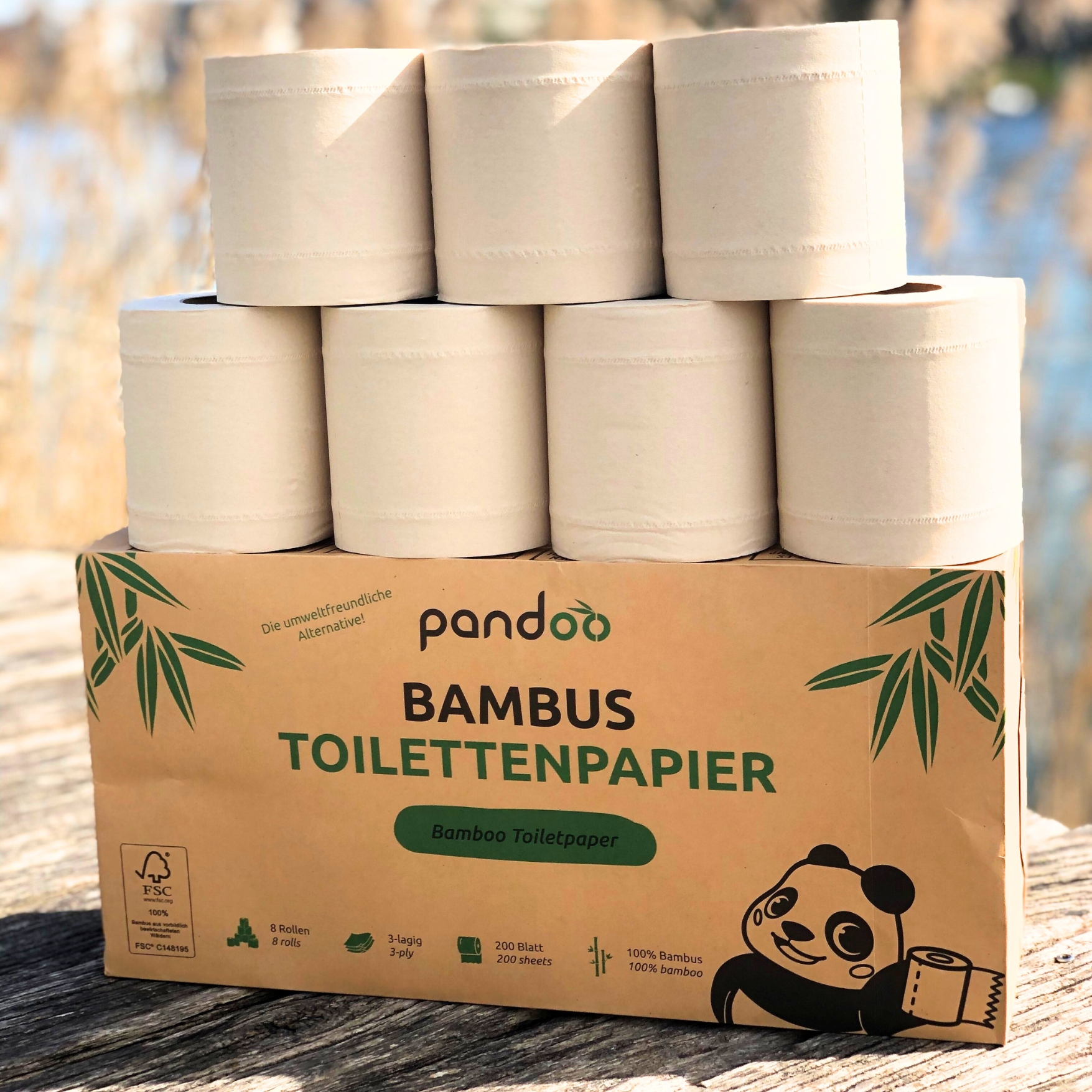 až 140 litrov vody? Pandoo Bambusový toaletný papier je