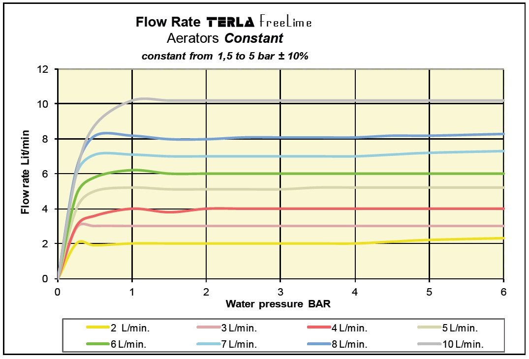 Úsporný perlátor Terla FreeLime s bublinkami a konštantným prietokom 2 l / min
