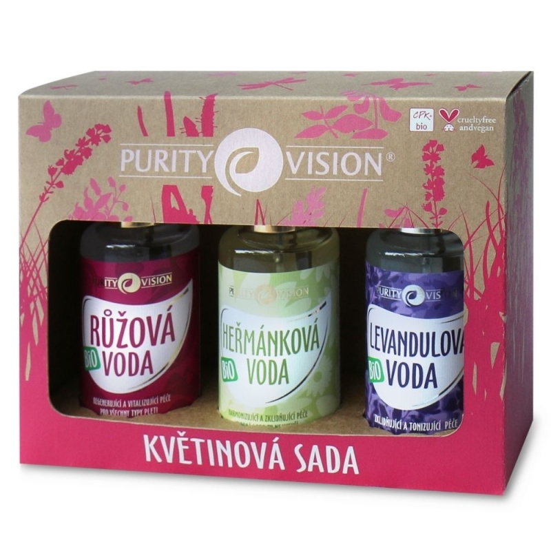 Bio Kvetinové vody PURITY VISION v sebe ukrývajú jedinečnú silu bylín. Pochádzajú z panensky čistej prírody bulharských hôr. Kvety sú ručne zbierané za svitania. Práve po chladnej noci totiž obsahujú najviac esenciálnych olejov, ktoré chránia krehké byliny pred zmrznutím. Zozbierané kvety sú ihneď prepravené na okamžité spracovanie. Len vďaka tomu, že preprava trvá maximálne 45 minút, si kvety zachovávajú prirodzenú sviežosť a jemnú vôňu. Spracovanie prebieha tradičným spôsobom pomocou dvojitej parnej destilácie, kedy na 1 liter kvetinovej vody je spotrebovaný minimálne 1kg kvetov. Kvetinové vody PURITY VISION sú ako jediné na slovenskom trhu vyrábané ako hlavný produkt, vďaka tomu majú vysoký obsah drahocenných esenciálnych olejov.