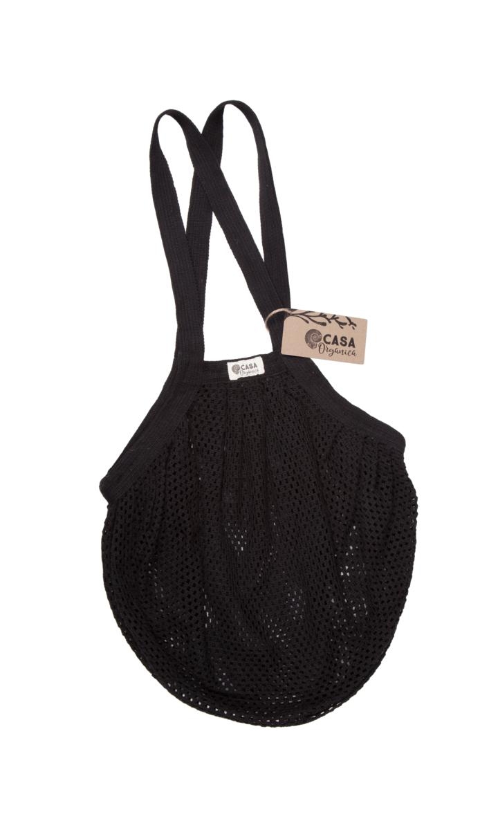 Praktická taška cez rameno z hustej bavlnenej sieťoviny. Jej tvar vychádza z klasickej sieťovky, ale na rozdiel od nej má oveľa hustejšie oká, takže sa hodí nielen na nákup, ale aj na každodenné nosenie. Ďalej o nej prezradíme, že má elegantnú čiernu farbu, rozmery 40 x 40 cm, váži 175 g a