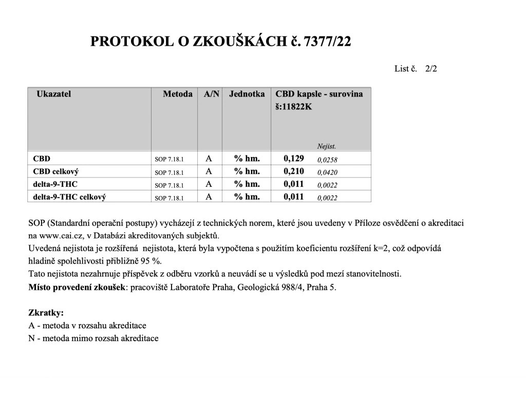 1 kapsula = 0,50 g = 5 mg CBD a 5 mg CBG